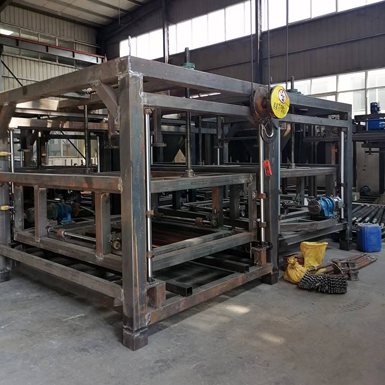 6)脫模:有擺渡脫模機將模具提起,并移動到另一軌道,等待小車的到來,繼續推進模具擺渡、澆筑。